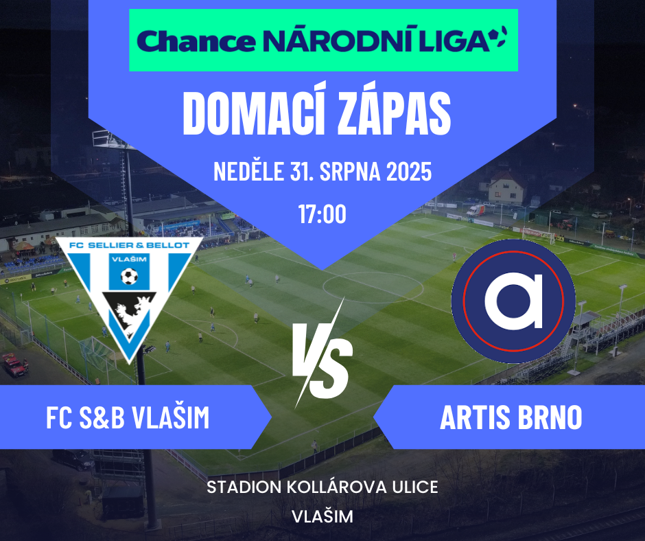 Poslední prázdninový den čeká vlašimské fotbalisty další ligové utkání. Tentokrát do Kollárovky dorazí ambiciózní tým Artis Brno. Výkop utkání je v 17:00 a jménem celého klubu zveme všechny fanoušky fotbalu na tribuny!