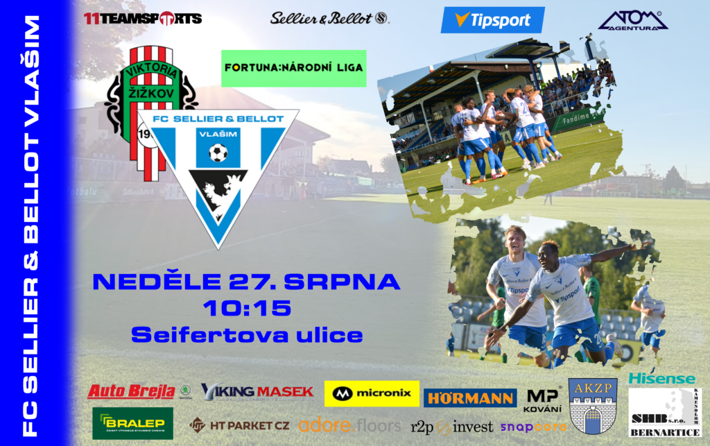 Utkání 7. kola FORTUNA:NÁRODNÍ LIGY mezi Žižkovem a Vlašimí startuje v neděli 27. srpna v 10:15 na stadionu v Seifertově ulici.